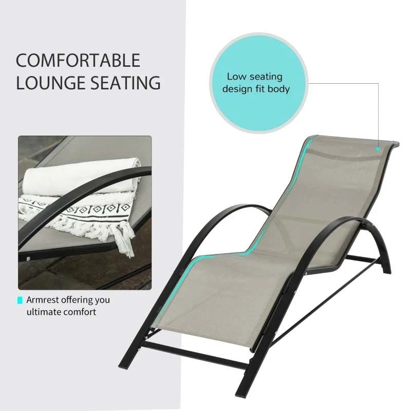 Outsunny 3 Piece Sun Lounger Set With Table – Grey – 84B-570GY
