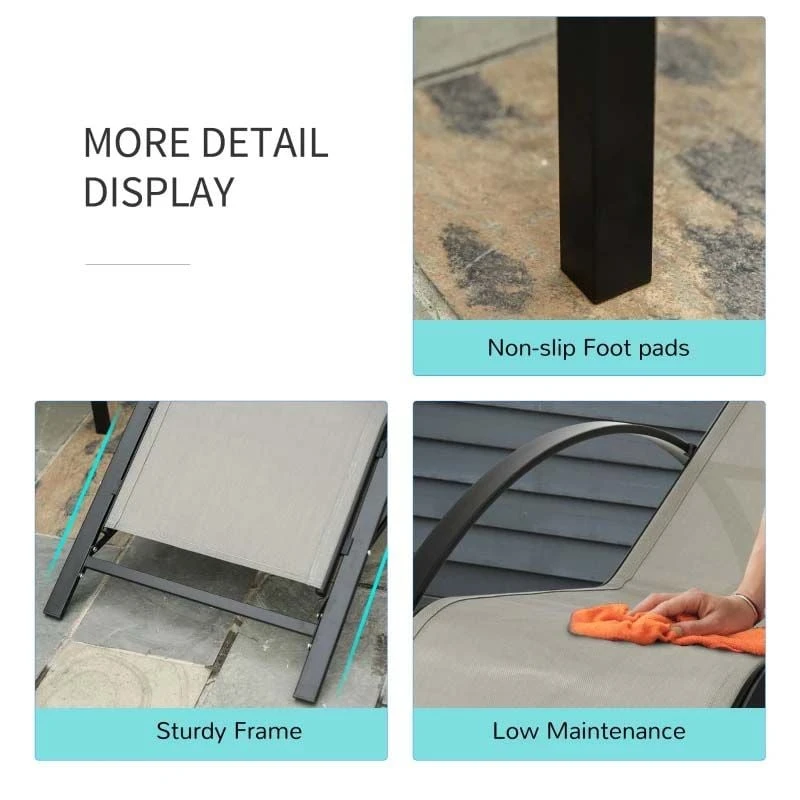 Check out these stunning Outsunny garden sun loungers with side table that we can be sure will compliment your outdoor living space perfectly. Constructed from a powder coated metal frame the set is strong, durable and will last for years to come. Covered in a mesh sling fabric that circulates air keeping you cool on warm summer days and are easily cleaned with a damp cloth. The curved seats contours your body perfectly and will make you feel fully supported and comfortable for hours on end. Complete with a handy side table ideal for resting your drinks or snack bowls on, that is also lightweight, so is easily manoeuvred to your preferred position, even with the elegant glass top finish. If you are looking for a beautifully designed sun lounger set, this is the one for you.