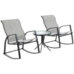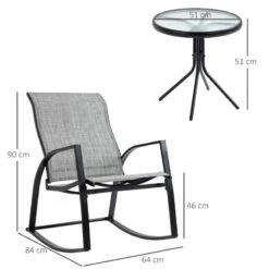 Outsunny’s rocking garden furniture three-piece outdoor set is the perfect addition to any garden, patio, or porch. The set consists of a matching table and two comfortable rocking chairs. The steel frame used to build this set is robust and long-lasting. To ensure their durability, the chairs are composed of breathable and comfortable textile material, making them ideal for lounging in the sun. Your floors are protected from damage by anti-slip foot protectors. A sleek and secure tempered glass top is included with the coffee table.