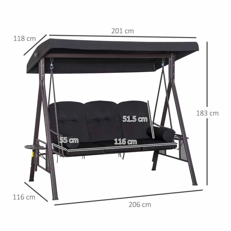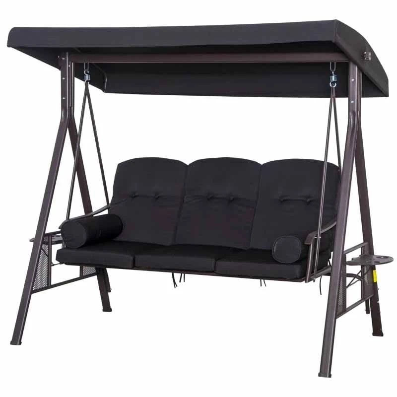 Outsunny 3-Seater Anti-UV Swing Chair with Cushion – Black – 84A-069BK