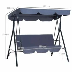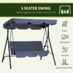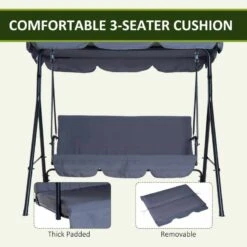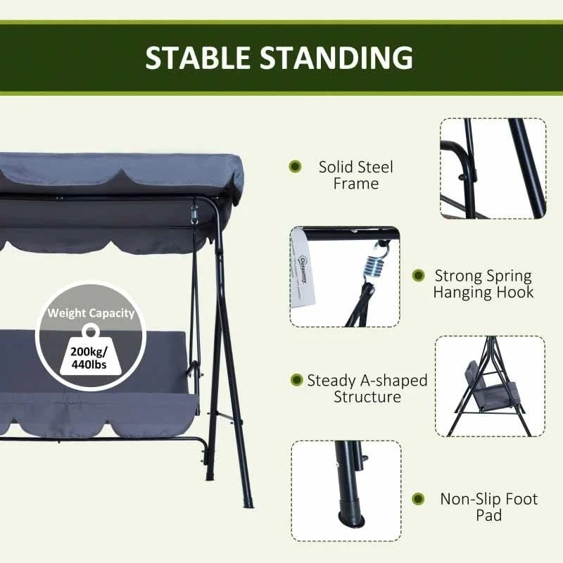 Outsunny 3 Seater Canopy Garden Swing Chair – Grey – 84A-054GY