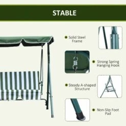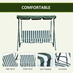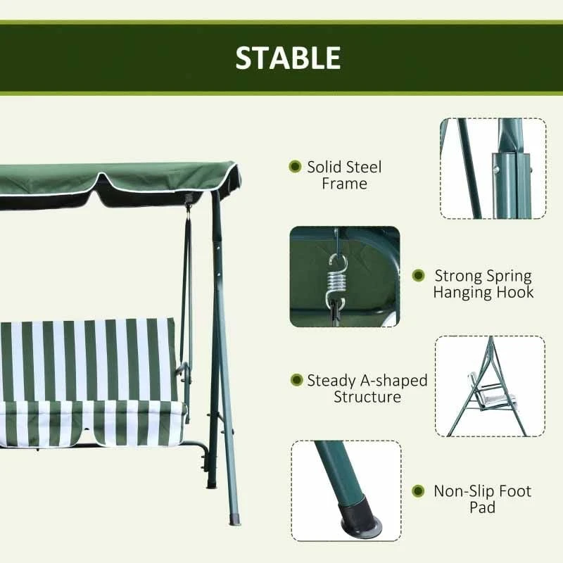 Outsunny 3-Seater Garden Swing Chair – Green – 84A-054V01