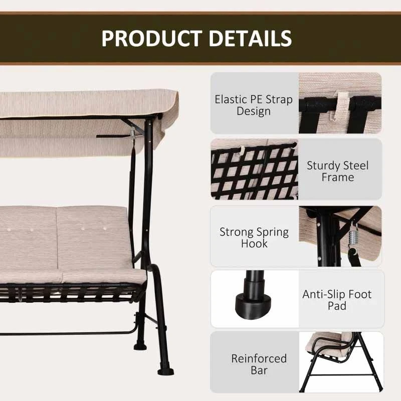 Outsunny 3-Seater Garden Swing Chair with Cushions – Beige – 84A-140V70BG