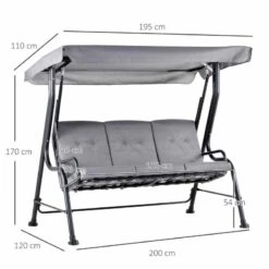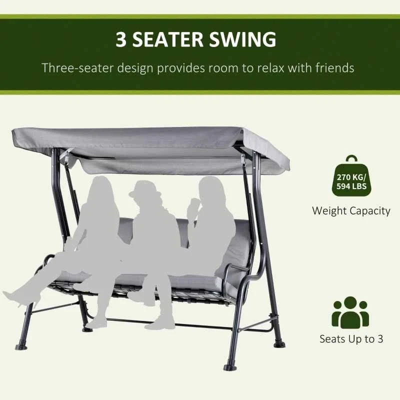 Outsunny 3 Seater Garden Swing Chair with Cushions- Grey -84A-140V70CG