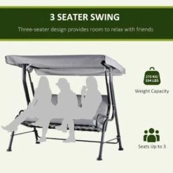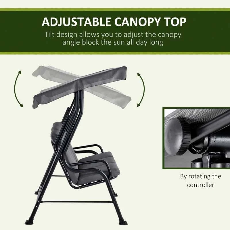 This three-seater Outsunny swing chair creates a perfect outdoor space to relax. Stylish jacquard-textilene cover thick cushions ensure high comfort. The cushion fabric is also water-resistant and easy to clean. The adjustable canopy offers protection from mild rain, UV Rays, and wind from your required angle. Powder coated steel frame is tough, steady and resistant to rust, with four legs to ensure it is balanced.