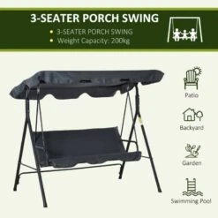 Outsunny 3-Seater Hammock Swing Chair with Canopy – Dark Grey – 84A-054V02GY