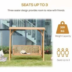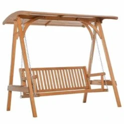 Outsunny 3-Seater Larch Wood Swing Chair – Teak – 01-0863