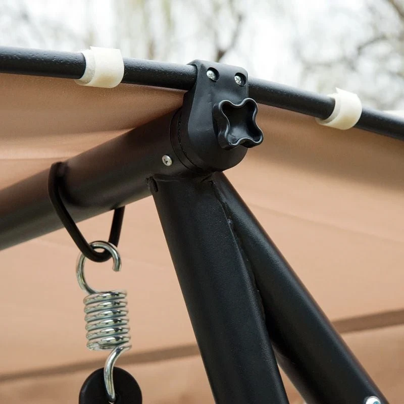 The 3 Seater Outsunny garden swing converts to a bed quickly and seamlessly. The waterproof canopy protects from the sun and rain. Also, the canopy is removable allowing you to enjoy sunshine with the breeze. Padded cushions and two pillows provide longtime sitting comfort and the built-in cup holders keep your favorite drinks at hand. The swing’s powder-coated steel frame and premium spring hook provide durability for long-lasting use. Anti-slip feet protect your floor beneath and maintain stability.