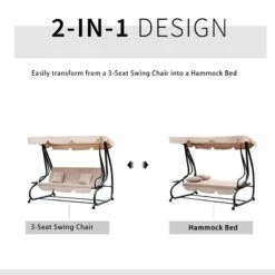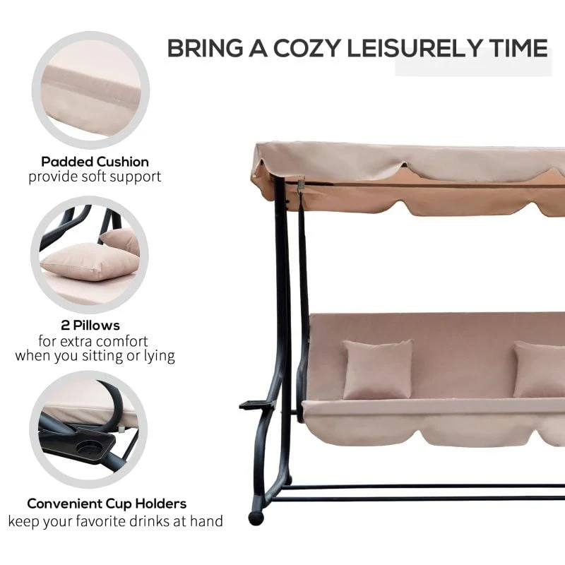 Outsunny 3 Seater Multi Function Swing Chair – Beige – 84A-050