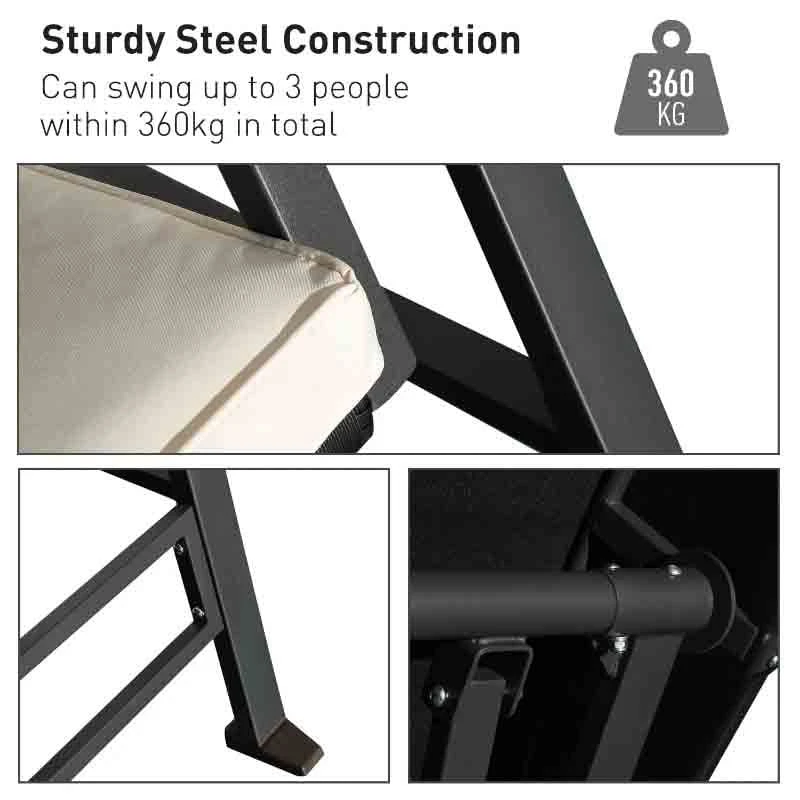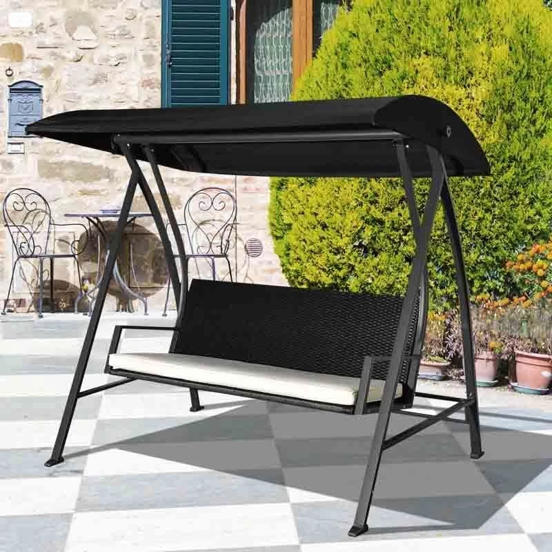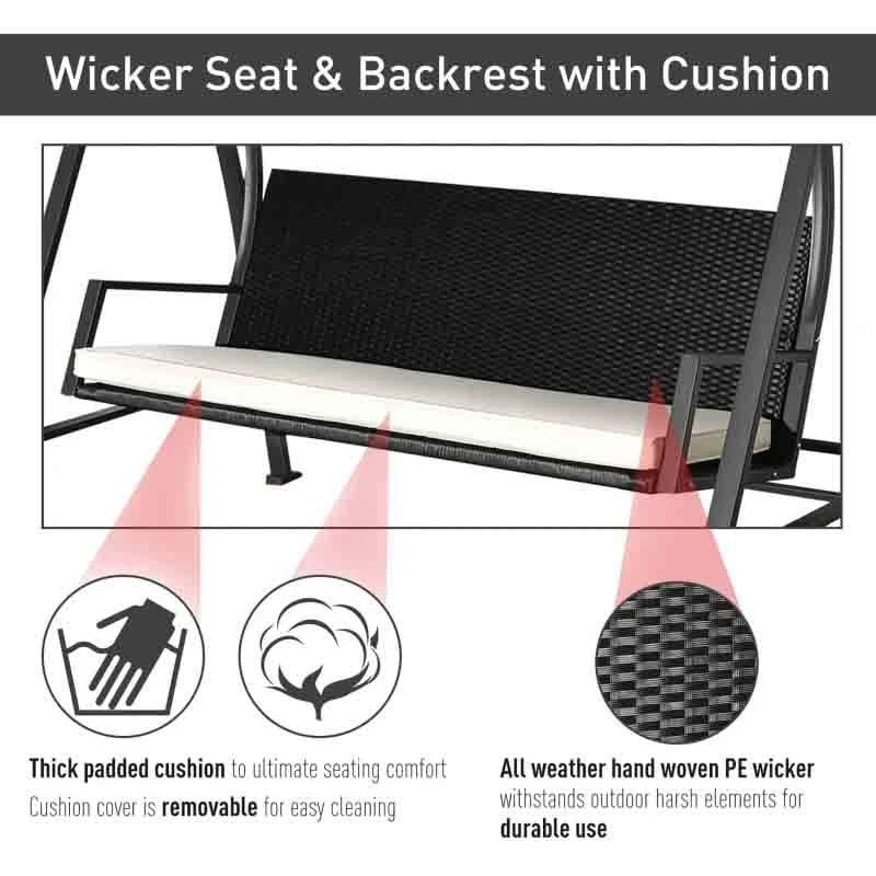 Outsunny 3 Seater Rattan Garden Swing Chair – Black – 01-0770