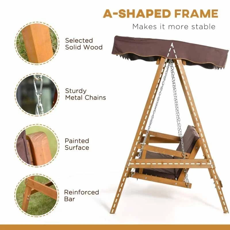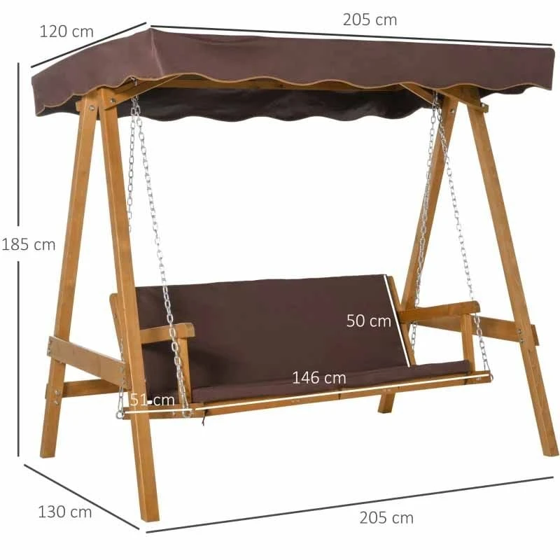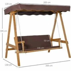 Outsunny 3-Seater Wooden Garden Swing Chair – Brown – 84A-152V70