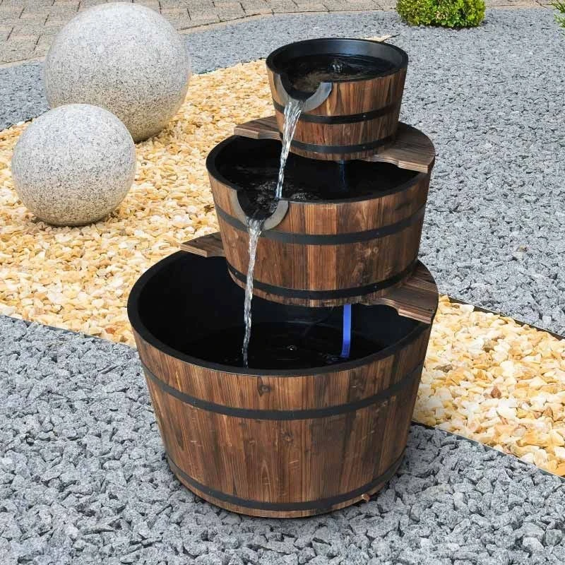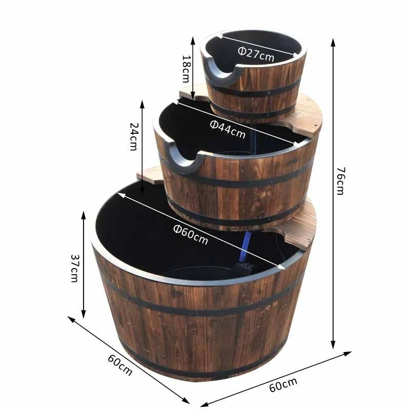 - 3-tier wooden barrels with cascading waterfalls