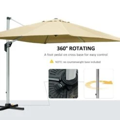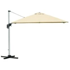 Outsunny 3 x 3m Cantilever Roma Parasol 360° Rotating with Cross Base – Beige – 84D-115