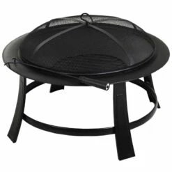 Outsunny 30″ Round Metal Fire Pit With Cover – Black – 842-079