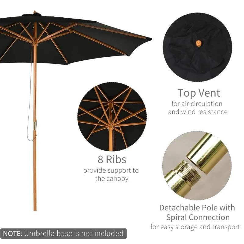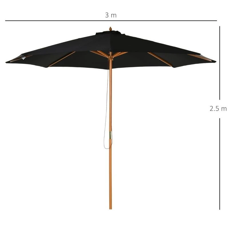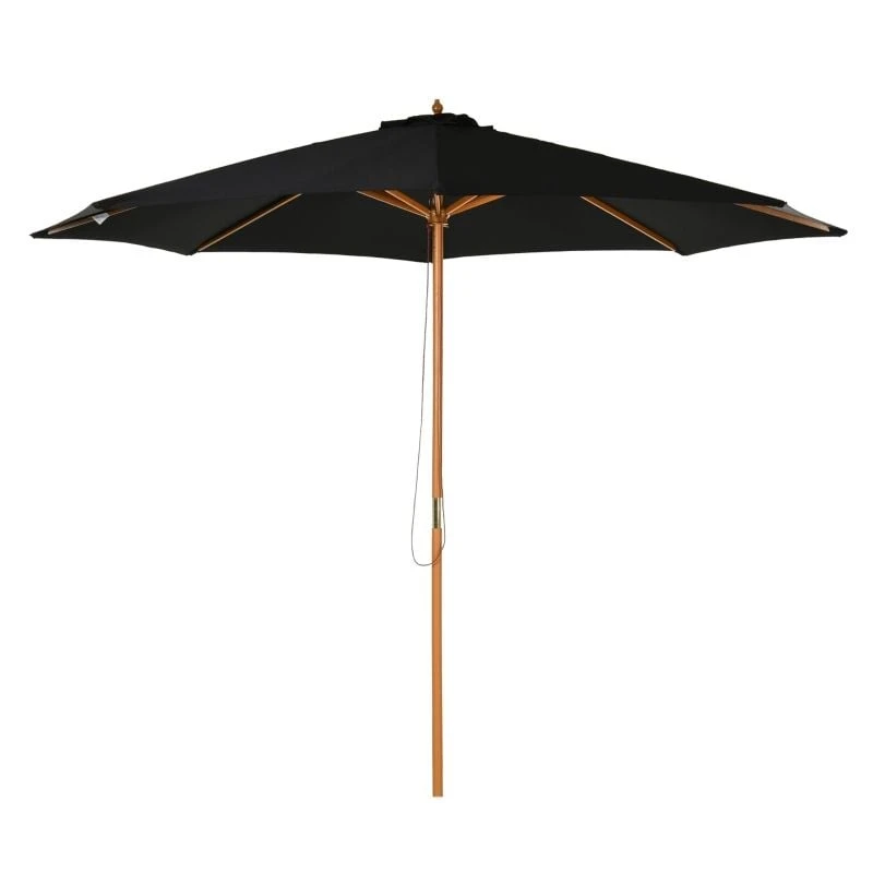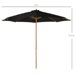 Outsunny 3m Bamboo Wooden Patio Umbrella 6 Ribs – Black – 840-065BK
