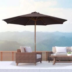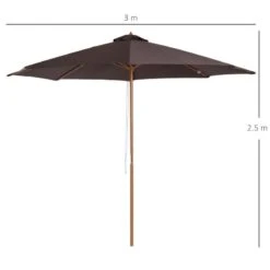 Outsunny 3m Bamboo Wooden Patio Umbrella 6 Ribs – Coffee – 01-0577