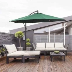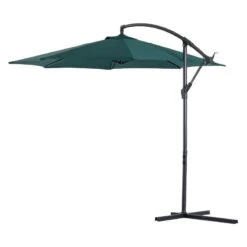 Outsunny 3m Banana Cantilever Parasol with Crank Handle and Cross Base – Dark Green – 84D-037GN