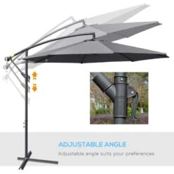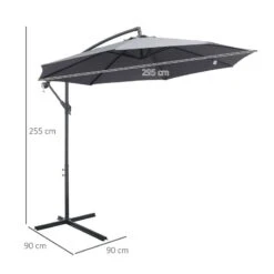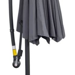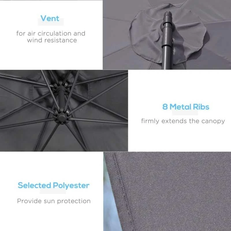 Outsunny 3m Banana Hanging Cantilever Parasol with Crank Handle and Cross Base – Grey – 84D-096GY