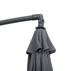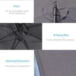 Outsunny’s trendy banana parasol is a fantastic piece for outdoor use, offering shade to large tables, sofas, bistro sets, and more. The metal core construction is robust and sturdy, connecting to the canopy with eight ribs for added stability. The canopy is thick to shield you from the sun and mild rain, and it has a top vent that allows air to travel through without risk of overturning. The crank handle easily unwinds the canopy. The garden parasol is sun- and light-water-protected. The set includes a cross base, but weights are required.
