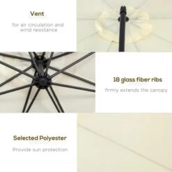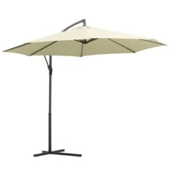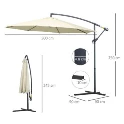 Outsunny 3m Banana Hanging Rattan Set Umbrella Cantilever Parasol – Cream White – 01-0218