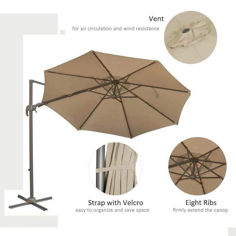 Outsunny 3m Beach Hanging Umbrella Parasol – Beige – 840-122