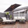 The Outsunny cantilever parasol with lights is the best way to extend the evenings this season. Solar-powered LED lights are installed beneath the canopy to brighten the outdoor space at night. The canopy can be opened and closed using the crank handle. The sturdy metal frame has eight ribs connecting to the canopy for increased stability, a big canopy for lots of sun protection, and an adjustable tilt for use at different times of the day. A cross base is included, and weights are needed for extra stability. Assembly required.