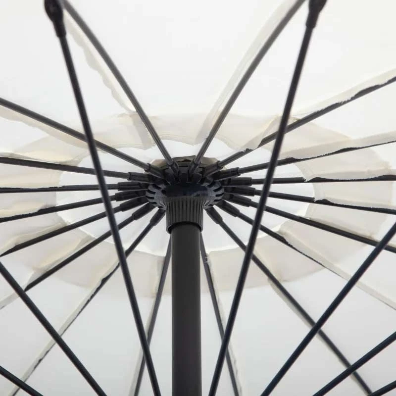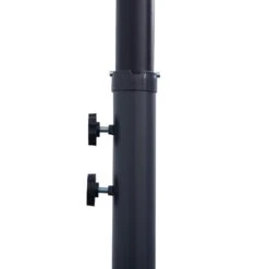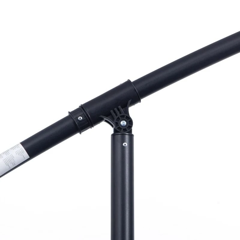 The overhanging form of the outsunny parasol umbrella shields you from the sun as you enjoy this summer. The large polyester canopy provides plenty of shade and reduces the risk of sunburn and UV damage. The canopy is linked to the sturdy metal frame by 18 fiberglass ribs for added strength and stability. Simple to assemble and disassemble. The canopy angle can be easily adjusted with the push button. Please keep in mind that only a cross base is included; no counterweight base is included. Look for a suitable base among the Outsunny skus 84D-070, 84D-128, 84D-048, and 84D-124.