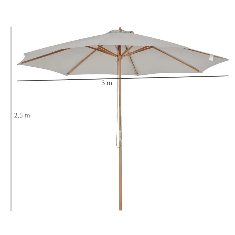 Outsunny 3m Fir Wooden Parasol – Grey – 840-065GY