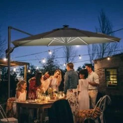 Outsunny’s cantilever parasol with lights would be ideal for gardens or outdoor spaces. The huge garden parasol with base will shield you from direct sunlight and heat, providing shade for a large area. The crank handle on the LED parasol makes it simple to use. The canopy rotates 360 degrees and adjusts to four different positions to cover and protect you all day. The UV 50+ canopy protects you from the sun while allowing you to enjoy it while minimising skin harm. Do not leave in the bad weather.
