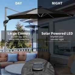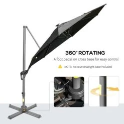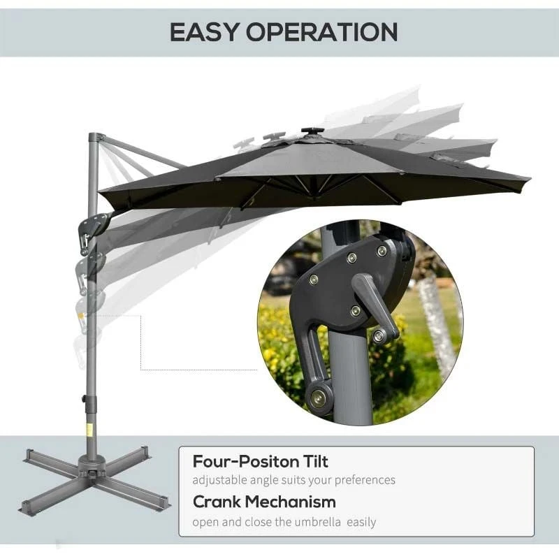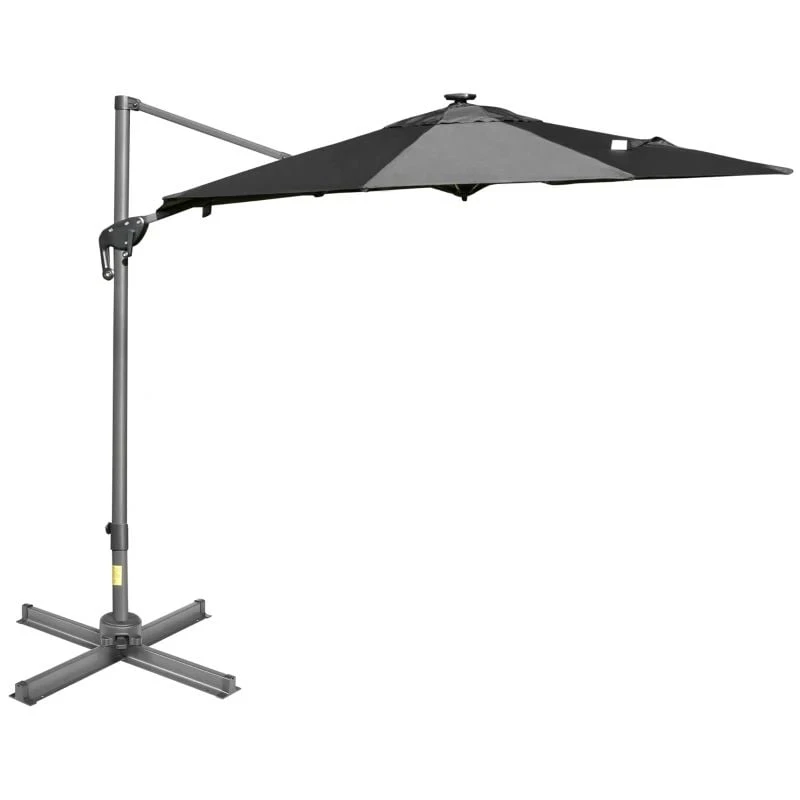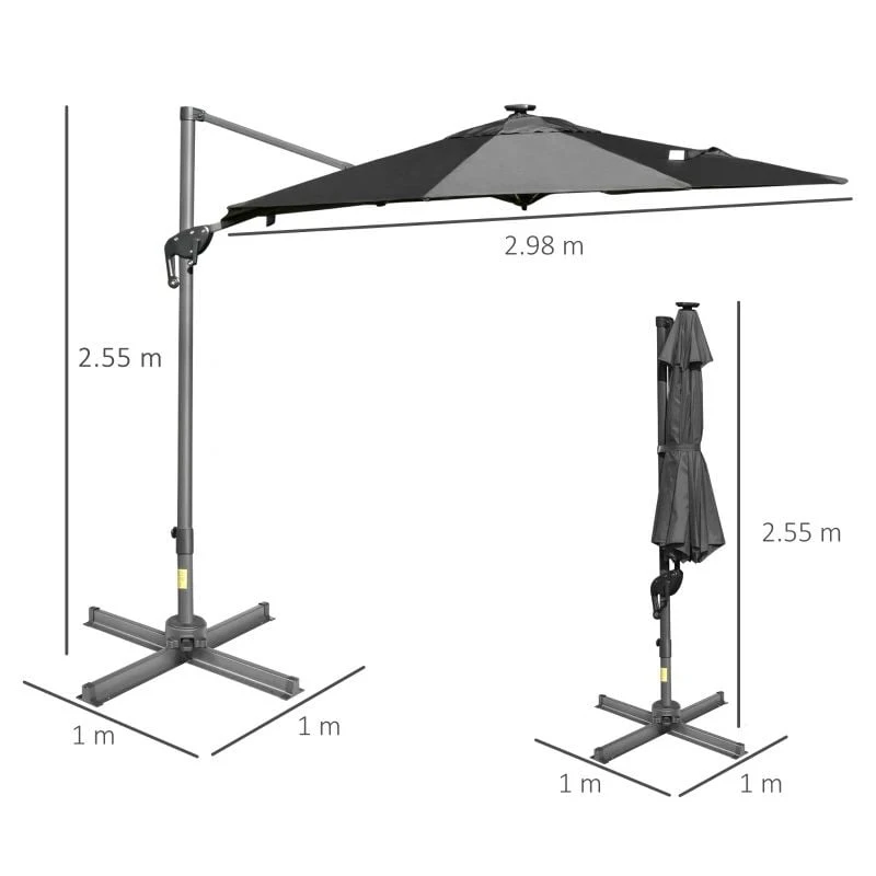 Outsunny 3m Solar LED Cantilever Adjustable Parasol with Base – Dark Grey – 84D-110CG