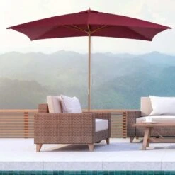 Outsunny 3x2m Wooden Garden Parasol – Wine Red – 01-0581