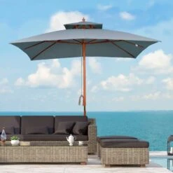Outsunny 3x3m Wood Square Patio Parasol – Dark Grey – 840-026CG