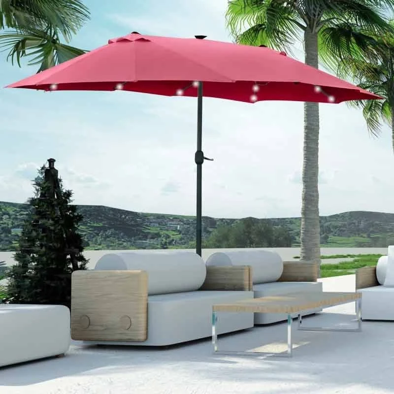 Outsunny 4.4m Double-Sided Parasol LED Solar Lights – Red – 84D-106WR