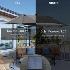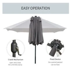 Outsunny’s solar parasol is a stylish design ideal for gardens, patios, and other outdoor spaces. The sun parasol has a trendy design and 36 lights on the frame ribs to illuminate your outdoor dining when it becomes dark. The enormous double parasol garden provides ample shade, shielding you from direct sunlight. A crank mechanism is used for easy opening and closing. The canopy has a top vent to prevent wind build-up and 12 ribs for extra support between the steel frame and canopy. Assembly is required.