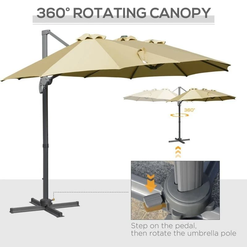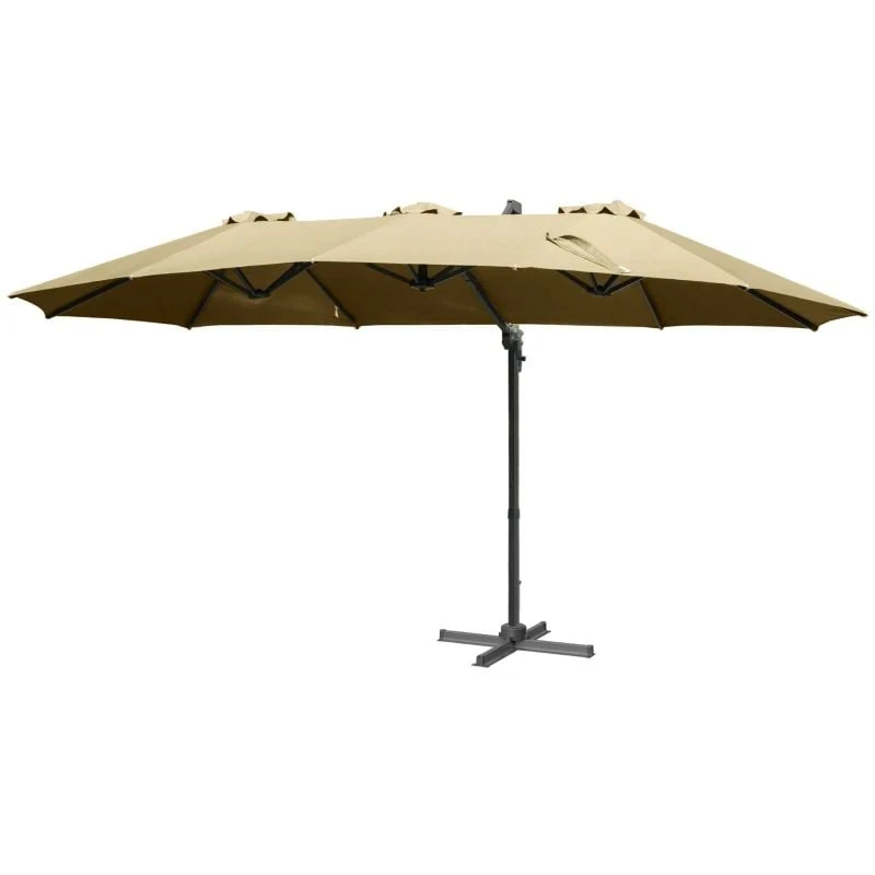 Outsunny 4.5m Large Double-Sided Rectangular Parasol with Crank Handle 360° Cross Base – Beige – 84D-183KK