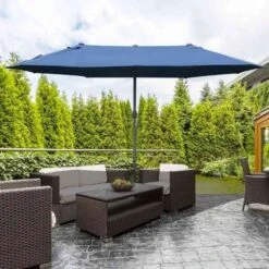 Outsunny 4.6m Double-Sided Crank Sun Shade with Cross Base – Dark Blue – 84D-031V02BU
