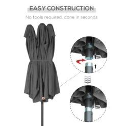 Outsunny’s double-canopy parasols are a great way to spend time outdoors this summer. These parasols provide enough coverage and shield you from the sun’s harmful UV rays and light rain throughout the day. The simple crank lift mechanism enables for seamless opening and closing, providing ease of use. The steel pole provides strength and durability, while the 12 connecting ribs provide stability and support over time. Please keep in mind that assembly is necessary and that the stand is not included.