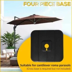 The Outsunny Four-Piece Parasol Base Weights will keep your cantilever parasol securely in place. These base weights are made of tough HDPE plastic and come in four sections that easily fit together. When empty, each piece is lightweight and portable, allowing you to choose the ideal shady position. These base weights are great for keeping your parasol steady, whether you’re setting it up in your garden, beside the pool, or on the patio. For added convenience, each component has a filling hole and a built-in handle. Please keep in mind that this item requires assembly and that the cross base is not included. These base weights are designed to work with non-rotating Roman umbrellas, allowing you to create a relaxing refuge in the shade.