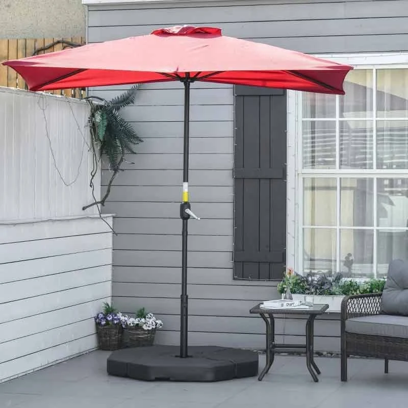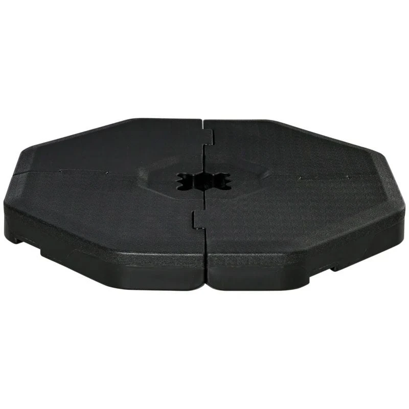 Our specialised parasol base weights will increase the stability of your Outsunny Cantilever banana and roma parasols. These weights, which are specifically designed for a secure fit, are ideal for keeping your parasols firmly in place throughout the summer. The four-piece kit can be filled with water or sand; for added stability, combine the two. Each patio umbrella base is made of tough HDPE plastic and has a convenient port for easy filling and emptying as well as a built-in handle for easy portability. Please keep in mind that the crossbase is not included. These base weights are perfect for banana and Roman umbrellas that do not have a turntable, making them ideal for a variety of outdoor environments.