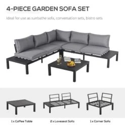 Outsunny 4 Piece L-shape Garden Furniture Set – Black/Grey – 84B-474