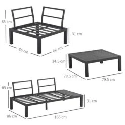 Check out this Outsunny 4pcs garden furniture set, complete with 2 love seats, 1 corner sofa and a coffee table, perfect for you and your family and friends to enjoy each-others company in the comfort of your own garden. The included cushions on the seat and back rests will keep you supported and comfortable for hours on end and the zipper covers are easily removed to be washed and maintained. The compact side table is ideal for resting multiple drinks and snack bowls, it is also lightweight so can be manoeuvred to your preferred position. Constructed from a strong metal frame, this garden set is durable, weather resistant and will last for years to come. We can be sure the modern design is ideal for any outdoor living space and will compliment your garden perfectly.