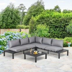 - Built of aluminum frame, this sofa set is resistant and durable for outdoor use