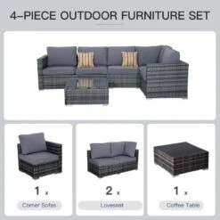 Outsunny 4 Piece Rattan Garden Furniture Set – Grey – 841-158