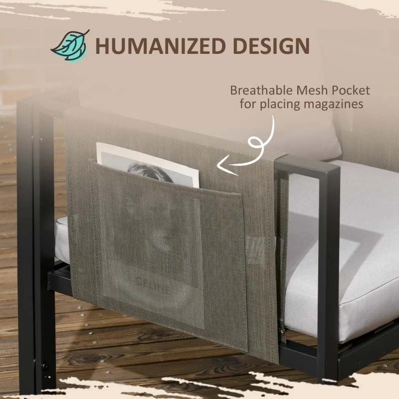 Check out this Outsunny 4-piece metal garden furniture set with 2 armchairs, 2-seater sofa and a coffee table that we can be sure will compliment your outdoor living space perfectly. The modern designs mean you can tuck the furniture set into a nice corner of your garden making the most out of your space. Constructed from a powder coated metal frame, this garden furniture set is durable, strong and will last for years to come. The extra wide seats, high back and arm rests will keep you and a few friends supported and completely comfortable for hours on end, complete with a slatted design to drain water and circulates air to keep you cool on warm summer days. The thick cushions, each have a zip making them easy to remove to wash and maintain yourself at home. The coffee table is light weight to be manoeuvred to your preferred position even with the glass top finish and easily cleaned with a damp cloth. Finished with handy side pockets on both sides of the chairs and 2-seater which are ideal for keeping your phone, tablet or book. If you are looking for a modern and stylish garden furniture set, look no further this is the one for you.