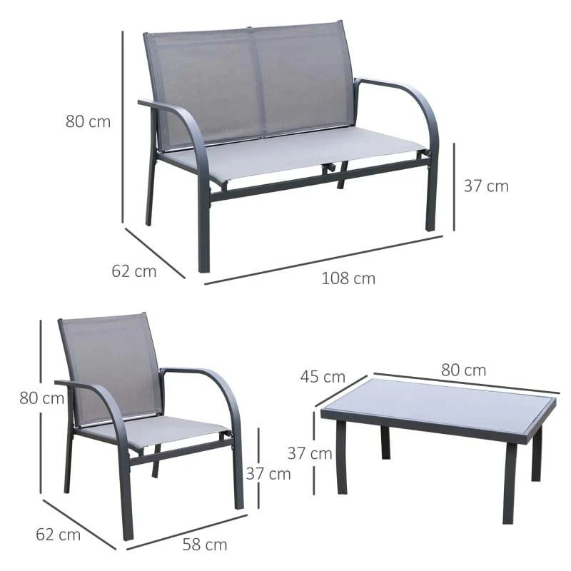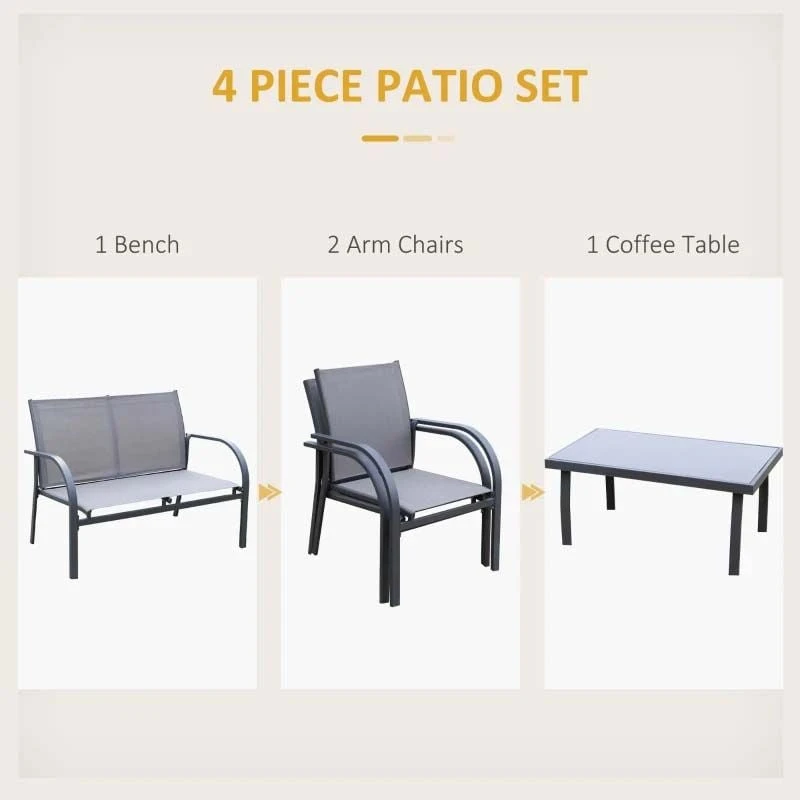 Outsunny 4-Seater Metal Garden Furniture Set – Grey – 84B-369