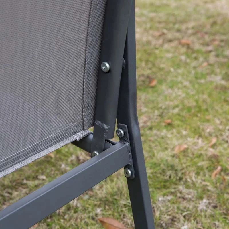 - Material: Steel Frame, Sling Mesh Fabric, Tempered Glass