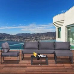 Outsunny 4-Seater Metal Garden Furniture Set – Grey – 860-052
