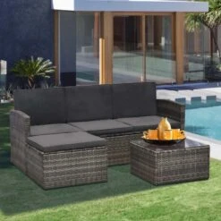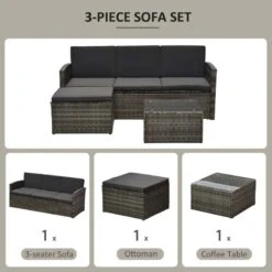 Outsunny 4-Seater Rattan Furniture Garden Set – Grey – 860-116V70
