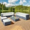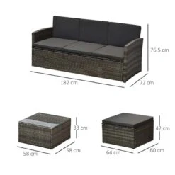 Check out this Outsunny 4-seater rattan garden sofa set that we can be sure will compliment your outdoor living space perfectly. The modern designs mean you can tuck the sofa into a nice corner of your garden making the most out of your space. Constructed from a metal frame and covered in a PE rattan wicker, this garden sofa set is durable, strong and will last for years to come. The extra wide seats, high back and arm rests will keep you and a few friends supported and completely comfortable for hours on end. The thick cushion, each have a zip making them easy to remove to wash and maintain yourself at home. The coffee table is light weight so can be manoeuvred to your preferred position, even with the elegant glass top finish. Use the stool to put your feet up or as an additional seat to entertain a friend. If you are looking for a relaxing and modern garden sofa set, this is the one for you.