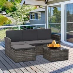 Outsunny 4-Seater Rattan Furniture Garden Set – Grey – 860-116V70